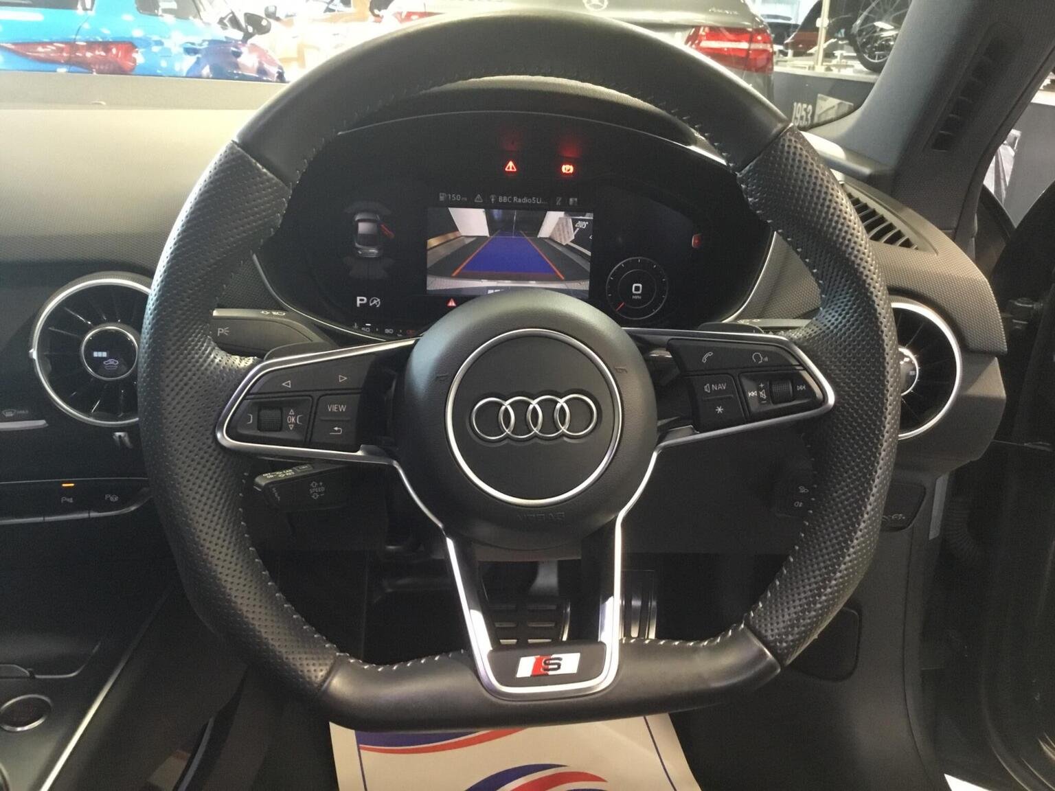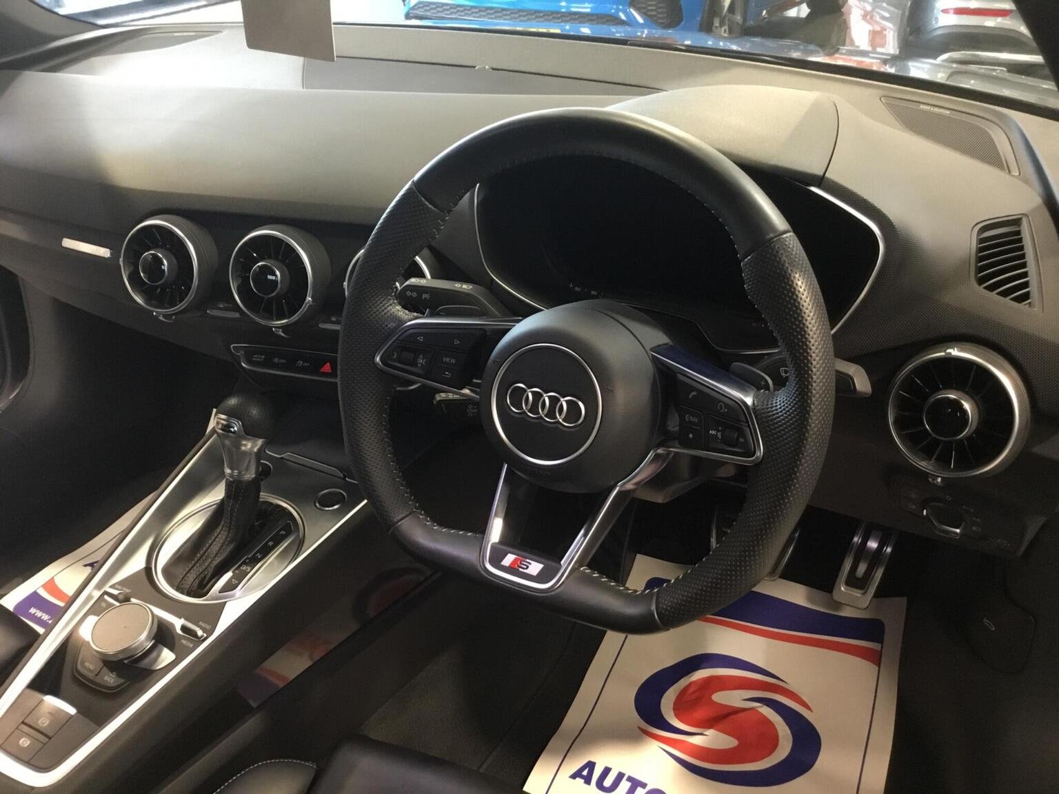 12V Socket, 20in Alloy Wheels - 5-Arm Cutter Design - Audi Sport - Anthracite Black - Diamond Cut, 4-Way Electric Lumbar Support for Front Seats, Anti Theft Locking Wheel Bolts, Anti-Theft Alarm, Audi Beam, Audi Drive Select, Audi Matrix LED Headlights, Audi Side Assist, Audi Smartphone Interface, Audi Virtual Cockpit, Auto-Dimming Rear-View Mirror, Black Chrome Tailpipes, Black Door Mirrors, Black Styling Package, Bluetooth Mobile Telephone Preparation, Camera-Based Traffic Sign Recognition, Comfort and Sound Package, Cruise Control, DAB Digital Radio, Deluxe Automatic Air Conditioning, Door Mirrors - Heated-Electrically Adjustable-Folding-Auto-Dimming Drivers, Door Sill Trims with S Line Logo, ESC - Electronic Stabilisation Control inc ABS - EBD - ASR - EDL, Electric Windows - Front, Electromechanical Parking Brake, Extended Aluminium Look in Interior, First Aid Kit and Warning Triangle, Fixed Rear Spoiler, Flat-Bottomed 3-Spoke Leather-Trimmed Multi-Function Sport Steering Wheel, Front Airbags with Front Passenger Deactivation, Front Centre Armrest, Gear Lever Knob in Black Perforated Leather, Head Level Airbags, Headlights - High-Beam Assist, Headlining - Black, Heated Front Seats, Hill Hold Assist, ISOFIX Child Seat Mounting for Front Passenger with Airbag Deactivation, ISOFIX Child Seat Mounting for Rear Seats, Inlays - Matt Brushed Aluminium, Interior Elements in Chrome Slate Grey Finish, Keyless Go, LED Interior Lighting Pack, Light and Rain Sensor, MMI Radio, Park Assist, Privacy Glass, Progressive Steering, S Line Badge on the Steering Wheel, S Line Badges on the Front Wings, S Line Sports Suspension - Lowered by 10mm, Split-Folding Rear Seats, Technology Package, Tool Kit, Tyre Pressure Loss Indicator, Tyre Repair Kit
