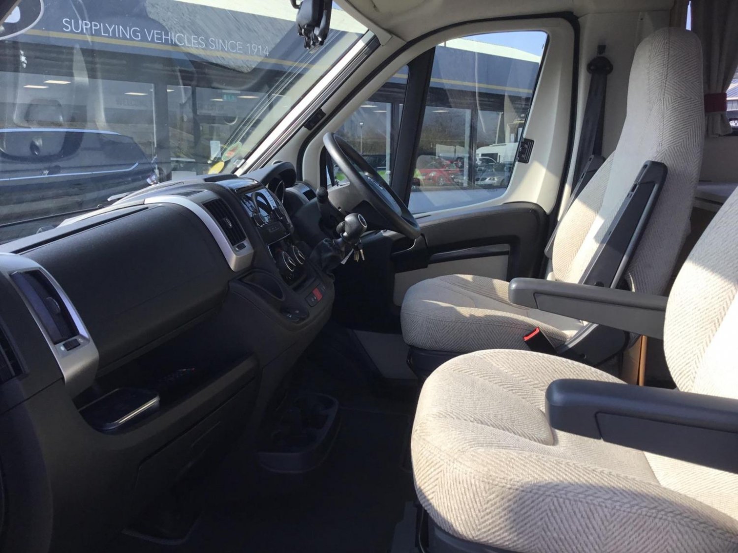 Bluetooth, Bike Rack, Awning, Air Conditioning, ABS, 12v Power, Air Con, Alarm, Awning Light, Battery Charger, Blinds, Blown Air Heating, Blown Air System, Cab DVD / CD, Cassette toilet with electric flush, Central Locking, CO2 Detectors, Colour Coded Bumpers, Cruise Control, Double Beds, Double Glazing, Dual Fuel Hob and Grill, Electric and Gas Heating, Electric Entrance Step, Electric Heater, Electric Mirrors, Electric Water Heater, Electric Windows, End Lounge, Exterior Access/Storage Locker, Exterior Gas Bottle Locker, External 240v, External Storage Locker, Fire Extinguisher, Flyscreen and Blinds, Fresh Water Tank, Fresh/Waste Water Tank, Fridge, Hob and Grill, Hot and Cold Shower Unit, Laminated Floor Construction, Large rooflight, Leisure Battery, Lined Curtains, Mains electric, Microwave, Mixer Taps, Multi-Directional TV Aerial, Multi-Function Trip Computer, On board water tank, Oven, Overcab Bed, Power Steering, Rear Seat belts, Reverse Camera, Reversing Sensors, Shower, Sink and Drainer, Skylight, smoke detectors, Spare wheel, Swivel Chairs, Swivel Drivers Seat, Swivel Passenger Seat, Toilet, Tracker, Under Floor Insulation, TV Aerial, Wardrobe, Waste Water Tank, Water heater, Wind Out Awning