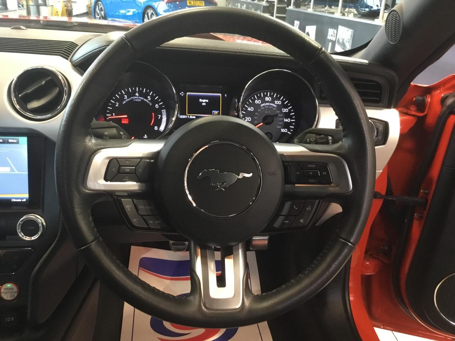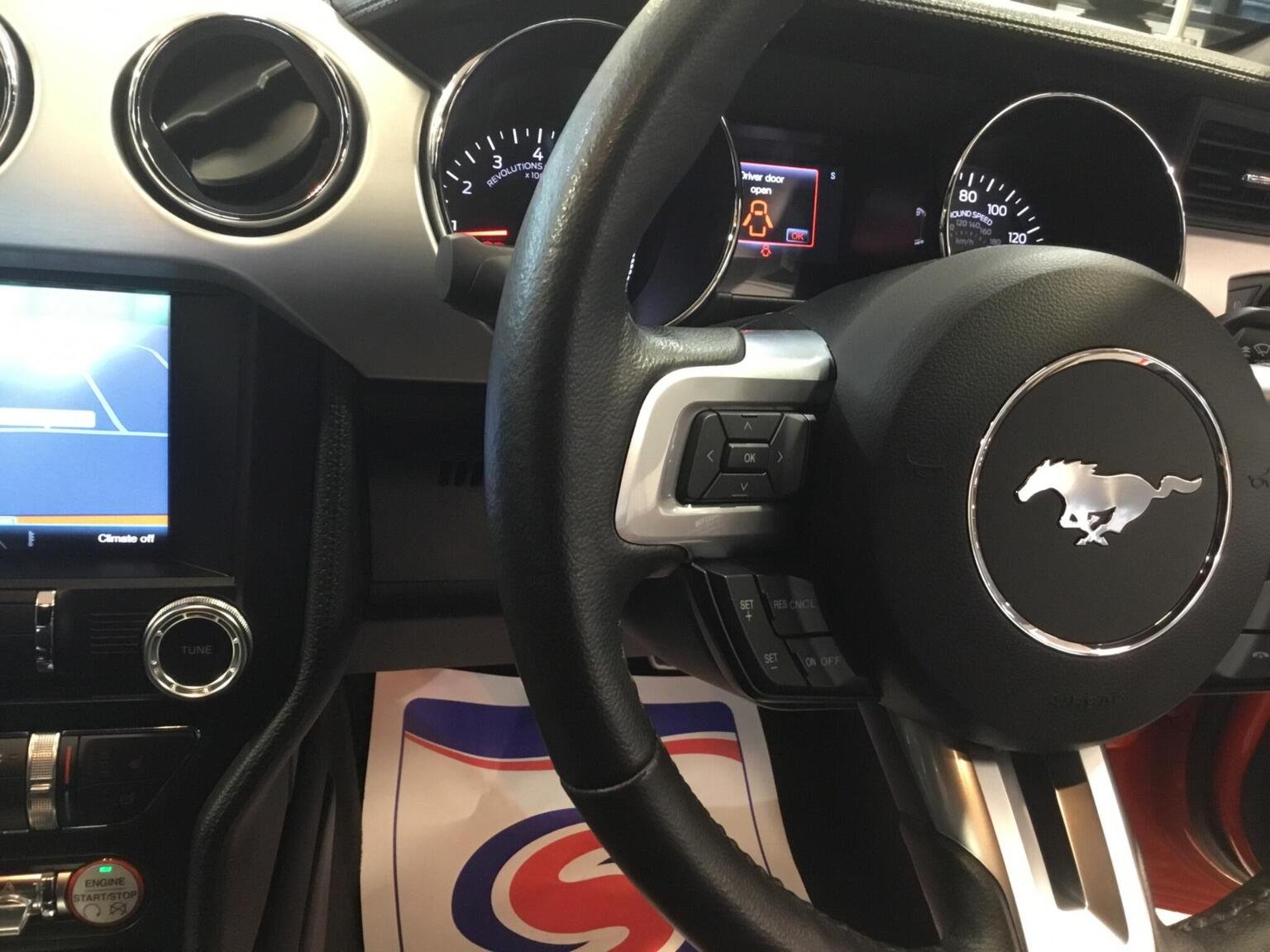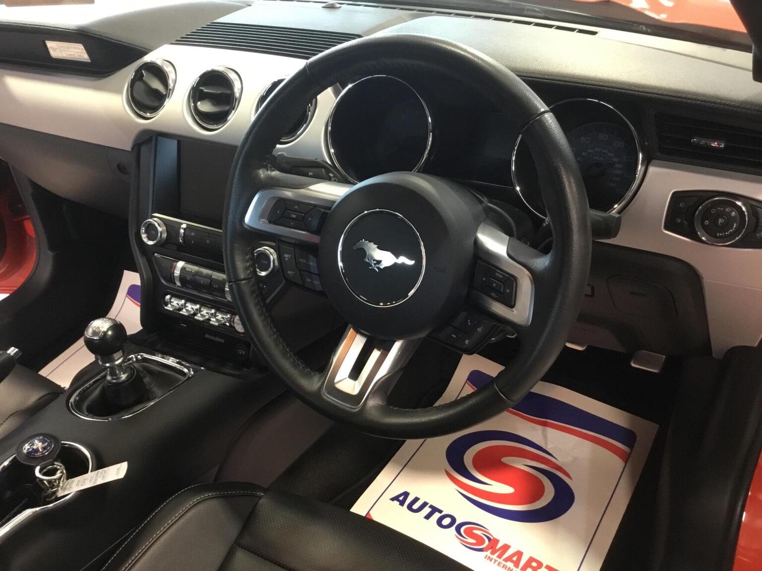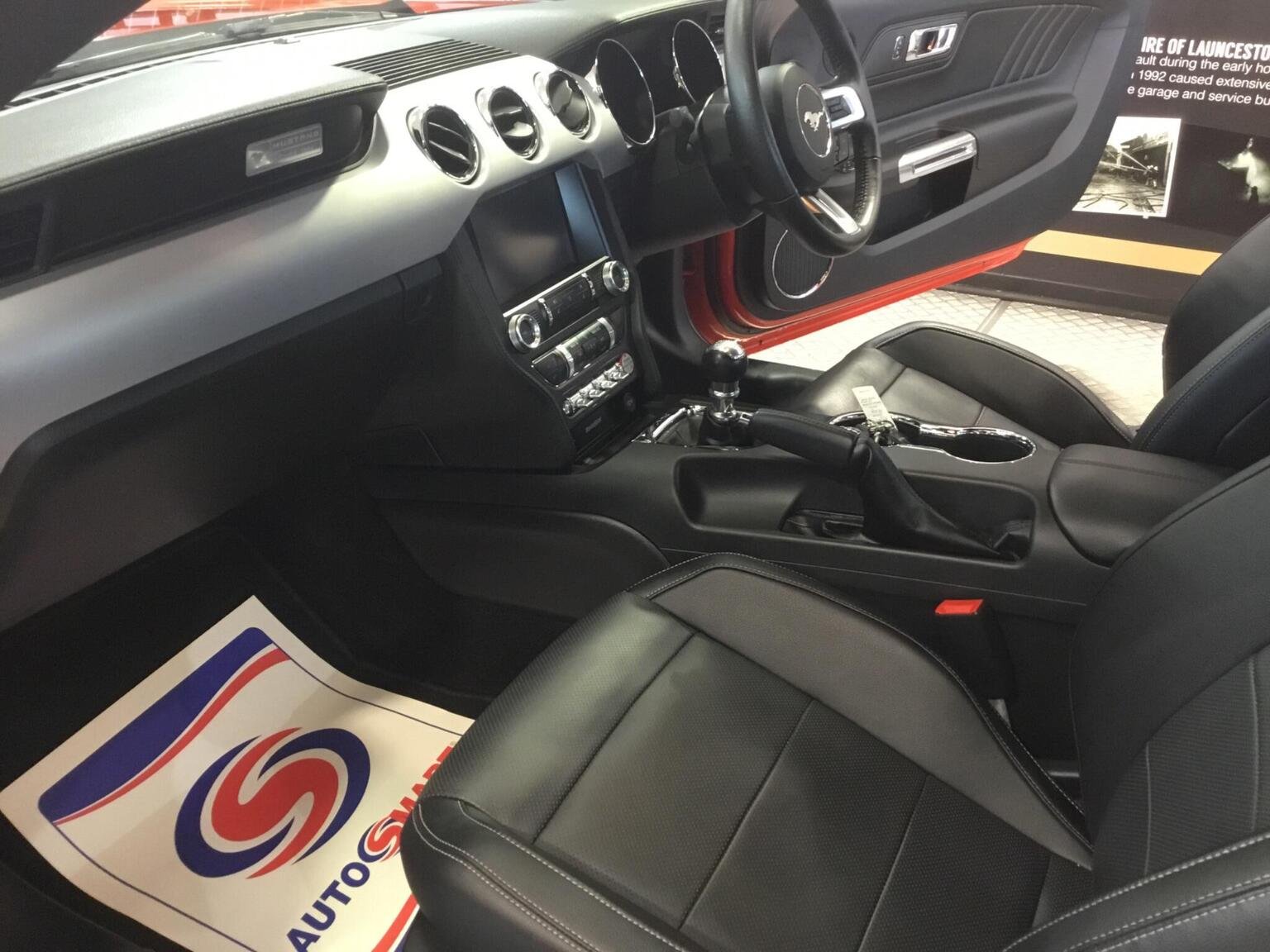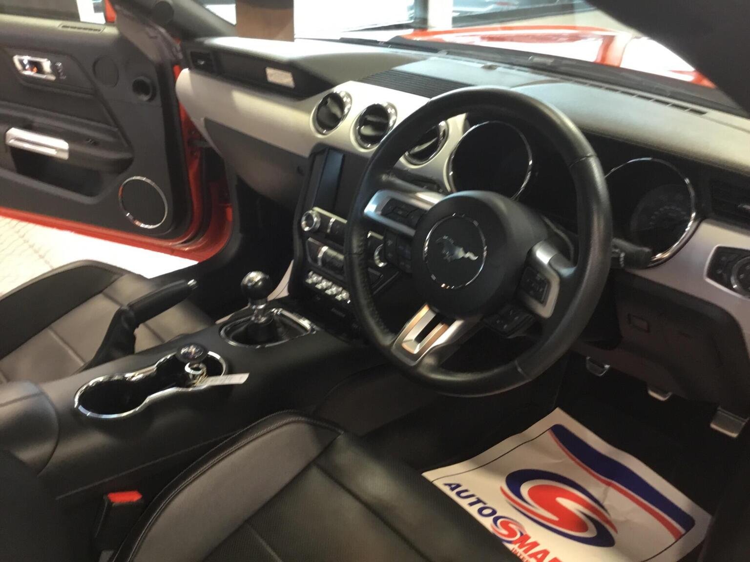 MyColour Ambient Interior Lighting, MyKey, Performance Brake System, Pollen Filter, Power Fold Door Mirrors, Rake and Reach Steering Adjustable, Rear Lights - LED, Rear View Camera, Seats - Drivers 6-Way Electric Adjustment, Seats - Lumbar Support - Drivers Electric, Seats - Passenger 6-Way Electric Adjustment, Seats - Passenger Lumbar Support, Selectable Driving Modes - Snow-Wet - Normal - Sport - Track, Speakers - x9, Steering Wheel - Leather Wrapped, Steering Wheel - Multifunction, Storage - Front Door Pockets, Thatcham Category 1 Alarm, Track Apps - Accelerometer Technology - Track Use Only, Traction Control - TC, Tyre Pressure Monitoring System, USB Connection, Voice Control - Audio, Voice Control - Climate Control, Voice Control - Navigation, Voice Control - Phone, 19in Alloy Wheels - Multi Spoke, 5.0 Exterior Badge on Front Wings, 8in Touchscreen Colour Display, ABS - Anti-lock Braking System, Air Conditioning - Dual Zone Electronic Automatic Temperature Control, Airbag - Front Passenger, Airbags - Curtain, Airbags - Drivers Knee, Airbags - Side Impact, Armrest - Front Centre Leather with Storage - Electrically Lockable, Automatic Dimming Rear View Mirror, Automatic Rain Sensing Wipers, Bi-Xenon Headlights, Bluetooth - Audio Streaming, Bluetooth Handsfree Phone System, Courtesy Light - Footwell Illumination, Cup Holders - Front x2, Daytime Running Lamps, Deployable Bonnet - Pedestrian Safety Feature, Door Mirrors - Puddle Lights with Mustang Logo, Drivers Airbag, EBA - Emergency Brake Assist, EPAS - Electric Power Assisted Steering, ESP - Electronic Stability Programme, Electrically-Operated Front Windows with One Touch Drivers, Electronic Line Lock - Track Use Only, Emergency Assistance, Ford DAB Audio System, Ford Power Starter Button, Ford SYNC2, Front Door Sill Protection - Scuff Tread Plates, Front Fog Lights, Front Grille - GT Vertical Power Bars, GT Exterior Badge on Bootlid, Glovebox, Headlights - Automatic, Headlights - Cleaning System, High-Mounted Rear Brake Light, Hill Start Assist, ISOFIX - Child Seat Attachments, Interior Trim - Chrome, KeyFree System, Launch Control - Track Only, Limited Slip Differential - LSD