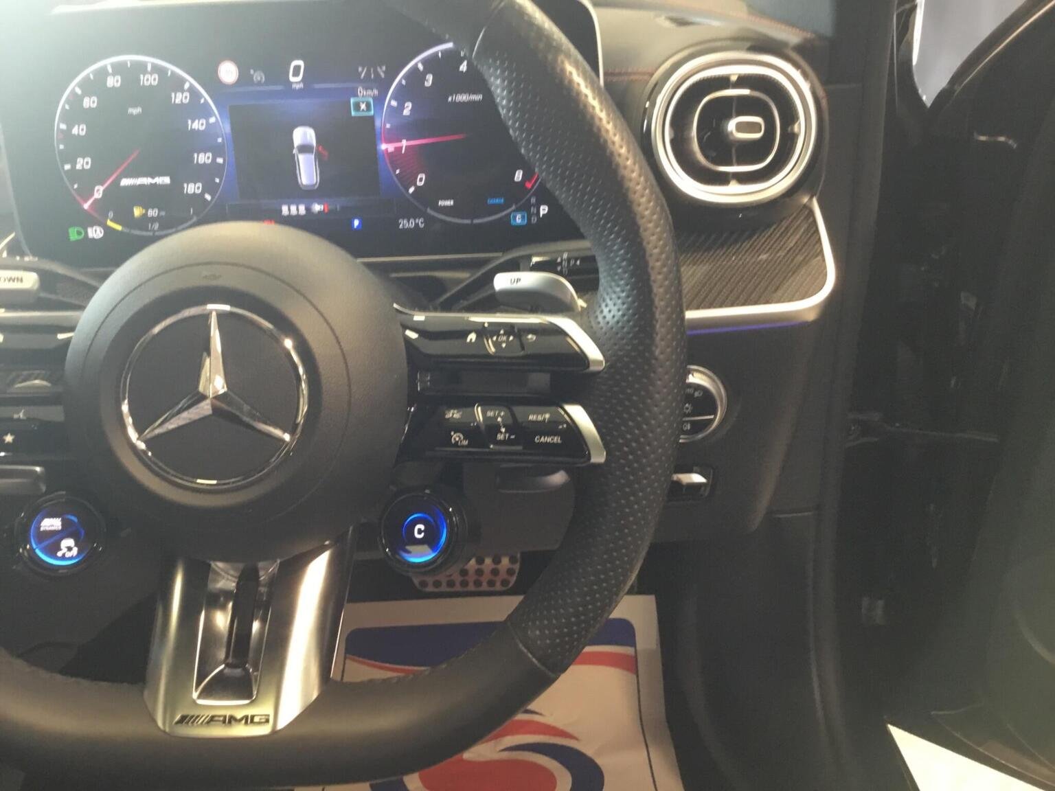 Seats - AMG Sports, Seats - Rear Split Folding 40-20-40, Service Indicator ASSYST, Smartphone Integration, Sports Direct-Steer System with Speed Sensitive Steering, Sports Pedals in Brushed Stainless Steel with Rubber Studs, Status Display for Rear Seat Belts in Instrument Cluster, Steering - Rear Axle, Steering Column - Electrically Adjustable for Height and Reach, Steering Wheel - Multi-Function with Audio and Onboard Settings Control, Stowage - Double Cup Holder in Centre Console, Stowage Package, Sun Visors with Illuminated Vanity Mirrors, THERMOTRONIC - Automatic Climate Control - Four-Zone, TIREFIT with Tyre Inflation Compressor, Tinted Glass All Round - Green, Top Surround of Side Windows in Polished Aluminium, Trim - High-Gloss Black with Carbon Fibre Trim, Tyre Pressure Monitoring System, Windscreen Wipers with Rain Sensor, Wireless Charging Surface integrated into Quick Stowage Tray in Front of Centre Console, 11.9in High Resolution Multimedia Colour Display, 12.3in Digital Individually Configurable Instrument Display, 20in Alloy Wheels - AMG 5-Twin-Spoke Design - Light Alloy - Aerodynamically Optimised - Painted Tantalite Grey with a High-Sheen Finish, ABS - Anti-Lock Braking System, AMG Bodystyling - Front and Rear Apron - Side Skirts, AMG Dynamic Select with a Choice of Driving Modes - Comfort-Sport-Sport Plus-Slippery and Individual, AMG Steering Wheel Buttons, ATTENTION Assist, Active Bonnet - Pedestrian Safety Measure which Detects an Impact and Raises Bonnet, Active Brake ASSIST PLUS, Active Parking Assist including PARKTRONIC, Adaptive Brake Assist with Hold Function and Brake Drying Function, Adaptive Brake Lamps, Advanced Sound System, Agility Control - Comfort Suspension, Agility Control - Sports Suspension with Adaptive Damping System, Ambient Lighting, Automatic Child Seat Recognition Sensor, Brake Calipers with Mercedes-Benz Lettering, Burmester 3D Surround Sound System, Central Locking with Interior Switch - Automatic Locking and Crash Sensor with Emergency Opening Function, Childproof Locks - Manually Operated for Rear Doors and Electrically Operated for Rear Power Windows, DAB Digital Radio Tuner, Dashboard - ARTICO Man-Made Leather, Dual-Stage Airbags - Driver and Front Passenger - Sidebags in Front Seats - Driver Kneebag - Pelvis Bag and Windowbags for Driver - Front Passenger and Rear Passengers, EASY PACK, ESP - Electronic Stability Programme, Electric Panoramic Glass Sunroof, Electric Parking Brake, Electric Windows - 4 - With One-Touch Opening and Closing - including Obstruction Sensors, Electronic Key - Chrome Surround, Exhaust System - Two Round Twin Tailpipe Trim Elements in High Gloss Chrome, Extended MBUX Functions, Exterior Mirrors - Heated and Electrically Adjustable, Fingerprint Sensor, First Aid Kit and Warning Triangle, Floor Mats - Black with AMG Lettering, Front Centre Armrest with Stowage Compartment, Front Door Sill Panels - Illuminated, Front Seats - Electrical Height and Backrest Adjustment and Four-Way Lumbar Adjustment, Full LED Tail Lights, GUARD 360 Vehicle Protection, Gearshift Paddle on Steering Wheel, Head-Up Display, Headlamps - LED Digital Lamps, Headlights - Adaptive High Beam Assist Plus, Heated Front Seats, ISOFIX Child Seat Attachment Points with Top Tether in Rear, Illuminated Glove Compartment, Interior Lighting Package, KEYLESS GO - Keyless Comfort Access Feature, Load Compartment Cover, Luggage Net in Boot and Folding Box Under Luggage, MBUX Augmented Reality for Navigation, MBUX Navigation Premium, MBUX Voice Control Activated by Keywords - Hey Mercedes, Memory Package, Mercedes Me Connect - Vehicle Set-Up and Vehicle Monitoring, Mirror Package, Obstruction Sensors, Outside Temperature Display, Parking Package with 360-Degree Camera, Powerdomes in Bonnet, Pre-Installation for Digital Key Transfer, Privacy Glass, Radiator Grille - Diamond Grille with Integrated Mercedes-Benz Star - Chrome Pins, Radio Aerial Integrated into Rear Window, Remote Boot Release, Remote Services, Roof Rails - Chrome, SPEEDTRONIC Cruise Control and Variable Speed Limiter, Seat Belts - Red, Seat Comfort Package